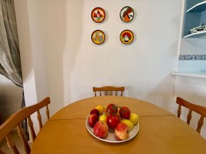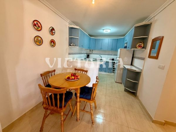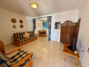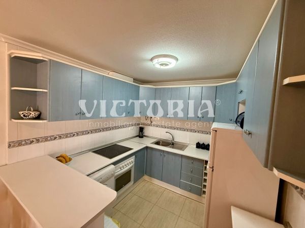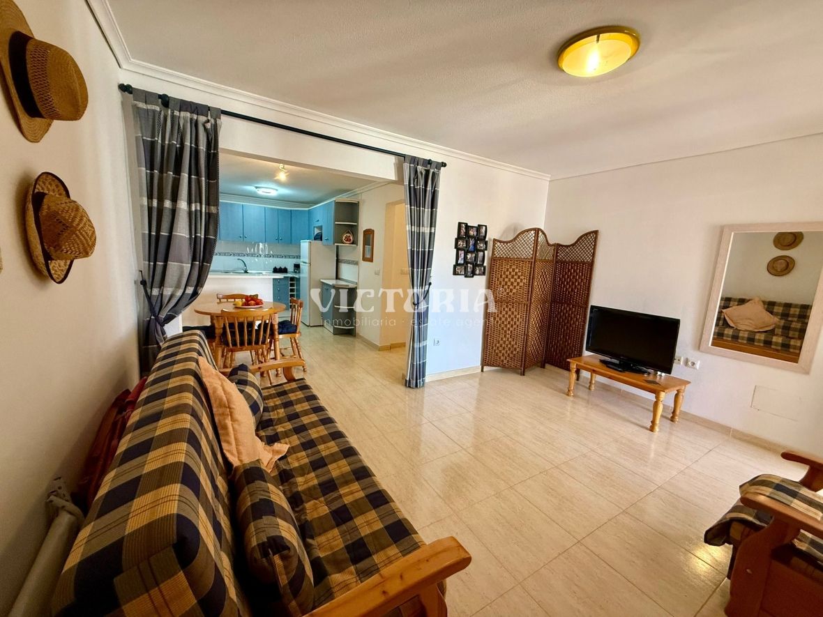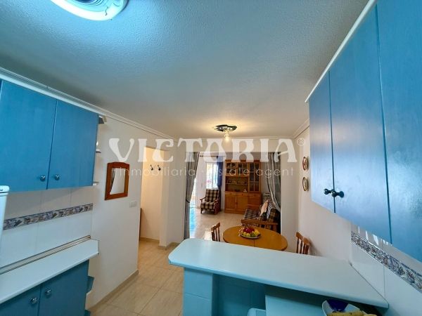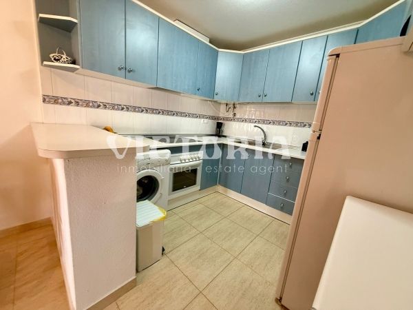 Para acceder a la vivienda accedemos a través de la amplia y acogedora terraza / jardín de 24 m2 y al entrar encontramos el bonito y acogedor salón que da paso a la cocina totalmente equipada.