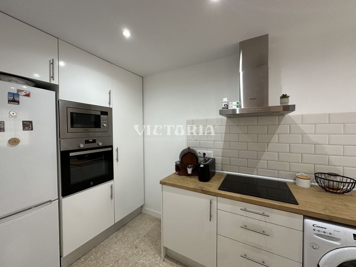 La vivienda, parcialmente reformada y orientada al este, se distribuye en 3 dormitorios, 2 baños completos, salón-comedor con salida directa a una gran terraza privada, y cocina equipada. Además, incluye plaza de aparcamiento asignada, aire acondicionado y armarios empotrados.