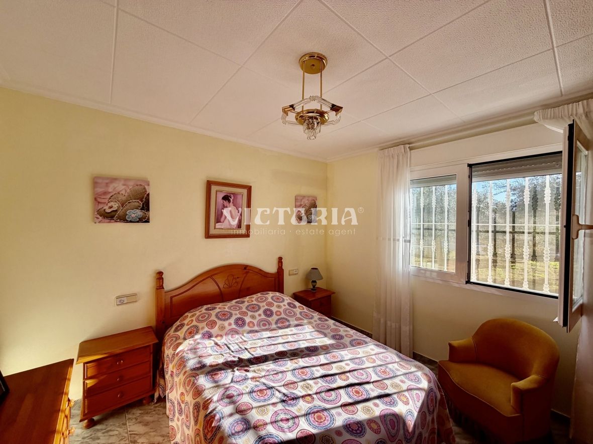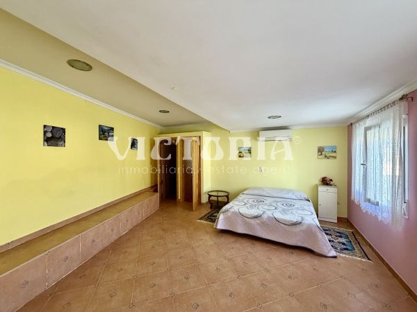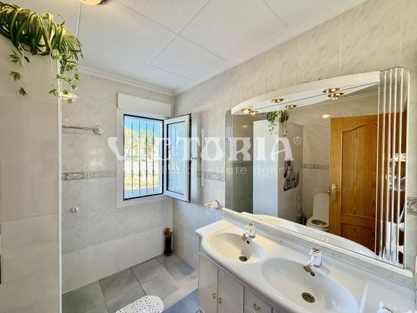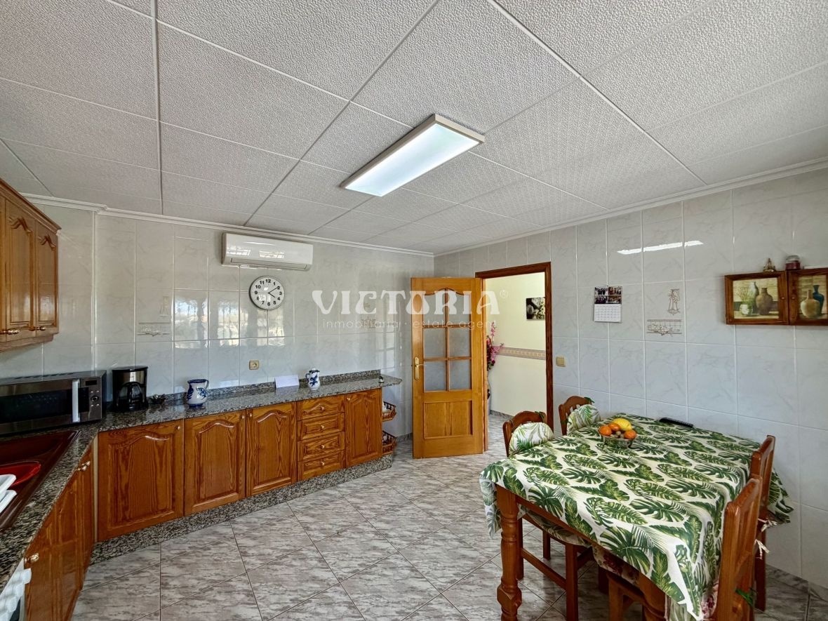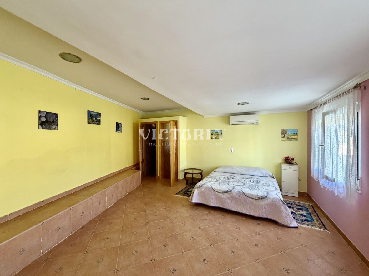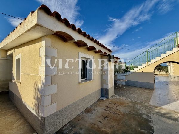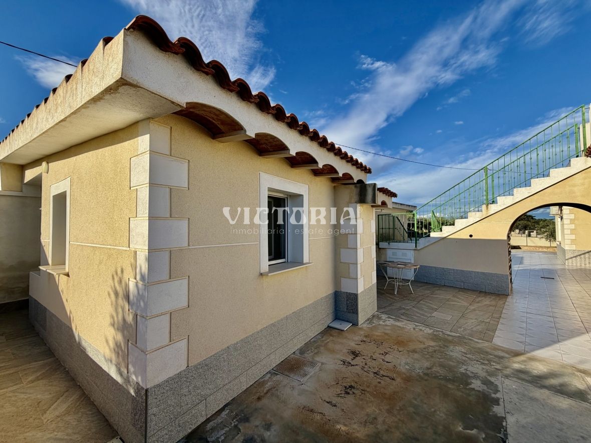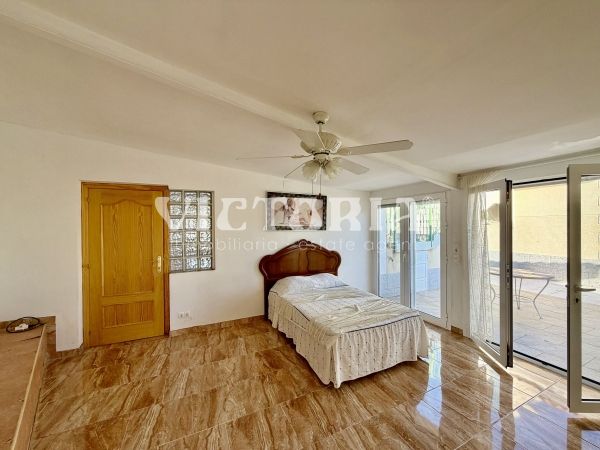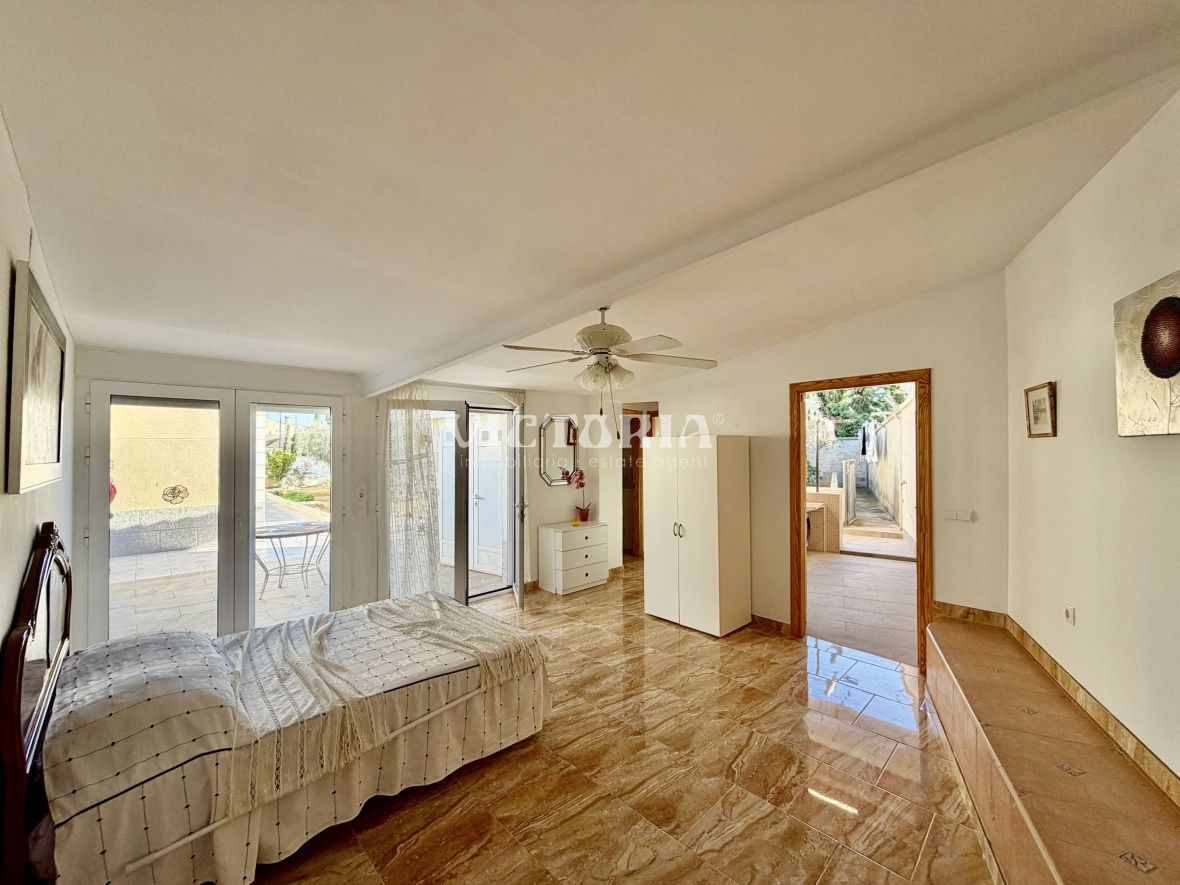 La vivienda principal dispone de 6 amplios dormitorios y 3 baños, uno de ellos en suite, además de un luminoso salón y cocina independiente. Está equipada con 3 aparatos de aire acondicionado, garantizando confort durante todo el año. Desde la vivienda se accede a una agradable zona de solárium, perfecta para disfrutar del clima mediterráneo.