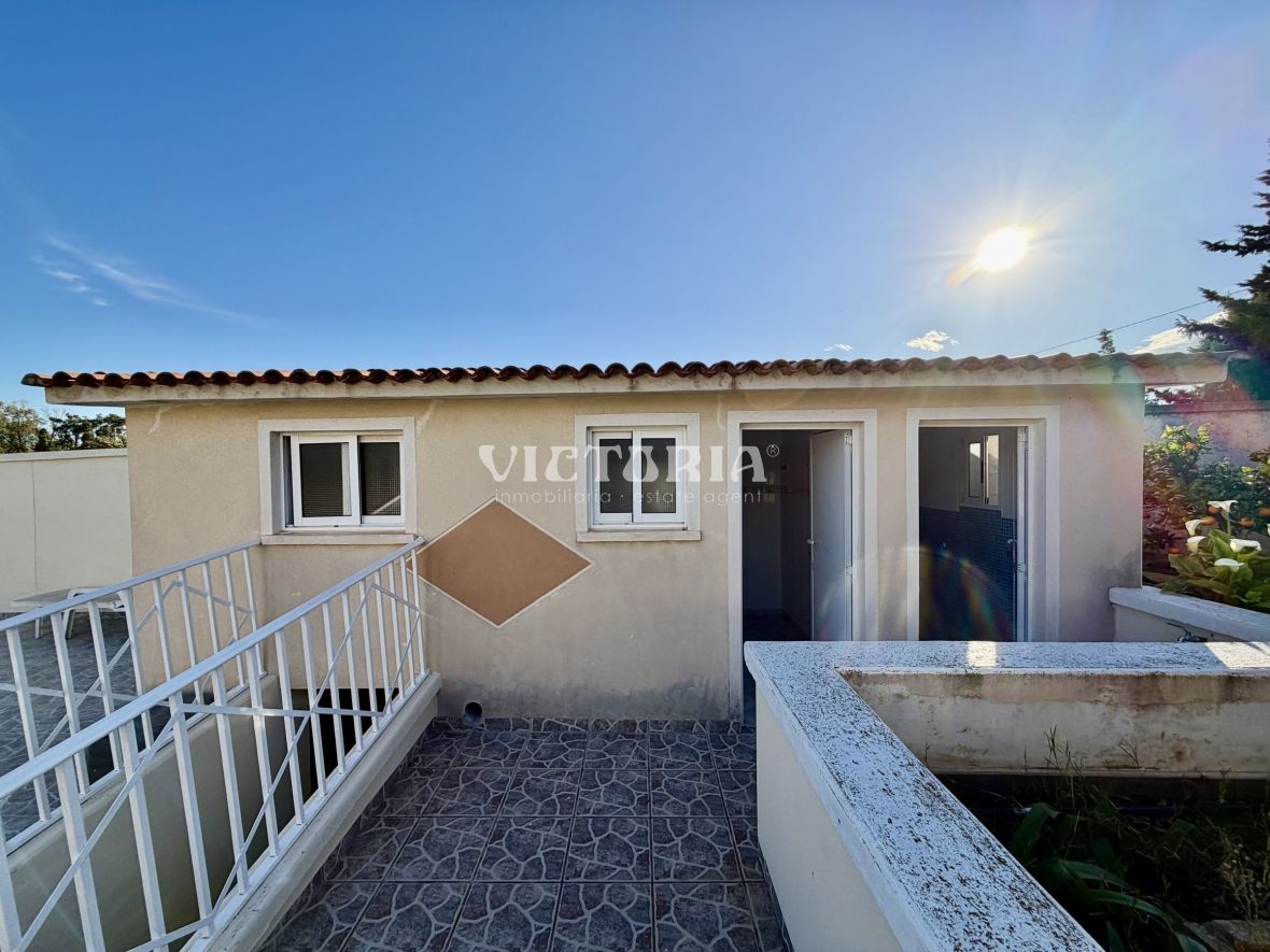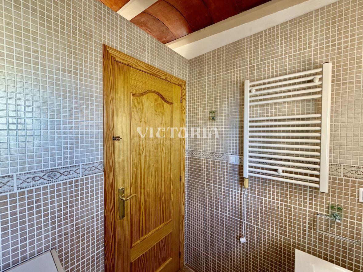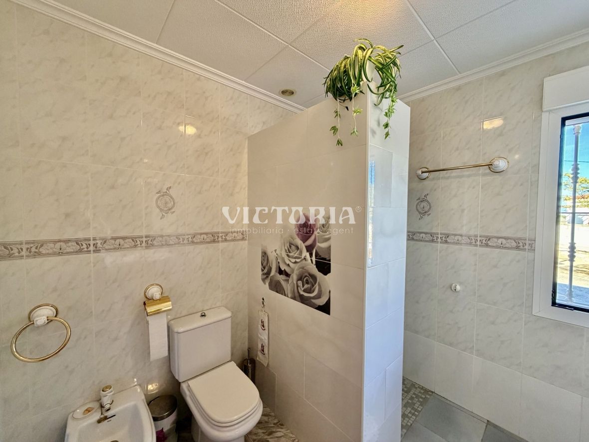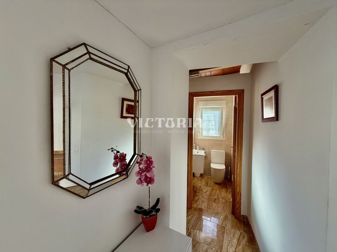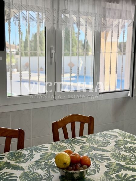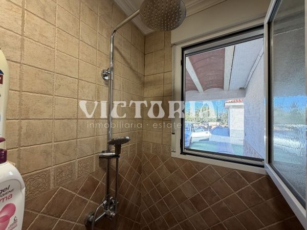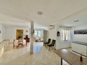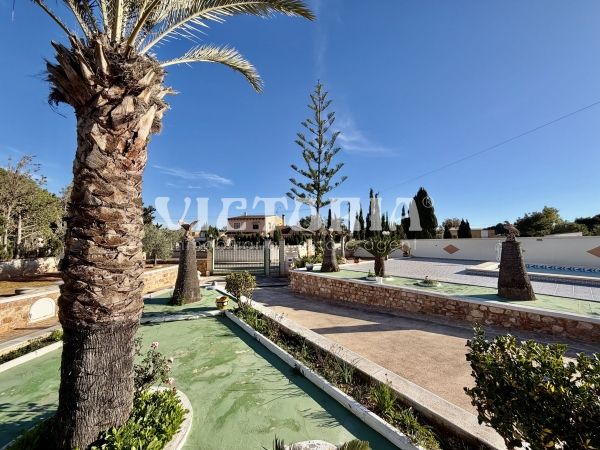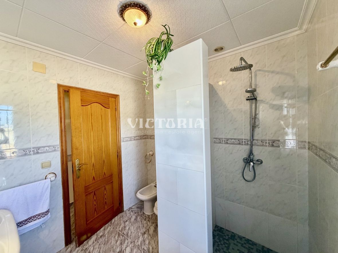 La vivienda principal dispone de 6 amplios dormitorios y 3 baños, uno de ellos en suite, además de un luminoso salón y cocina independiente. Está equipada con 3 aparatos de aire acondicionado, garantizando confort durante todo el año. Desde la vivienda se accede a una agradable zona de solárium, perfecta para disfrutar del clima mediterráneo.