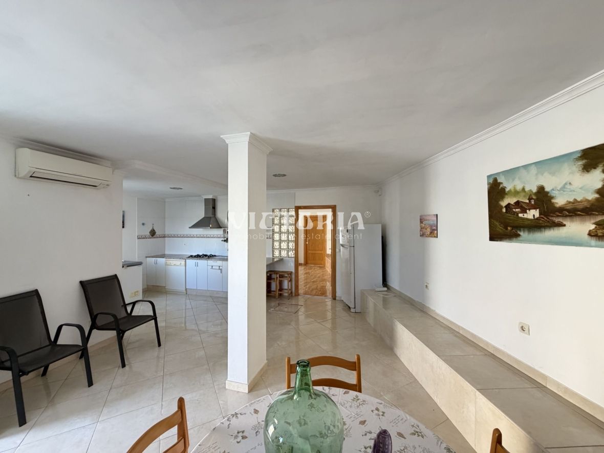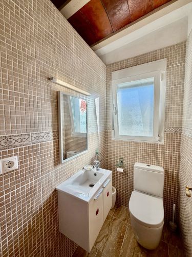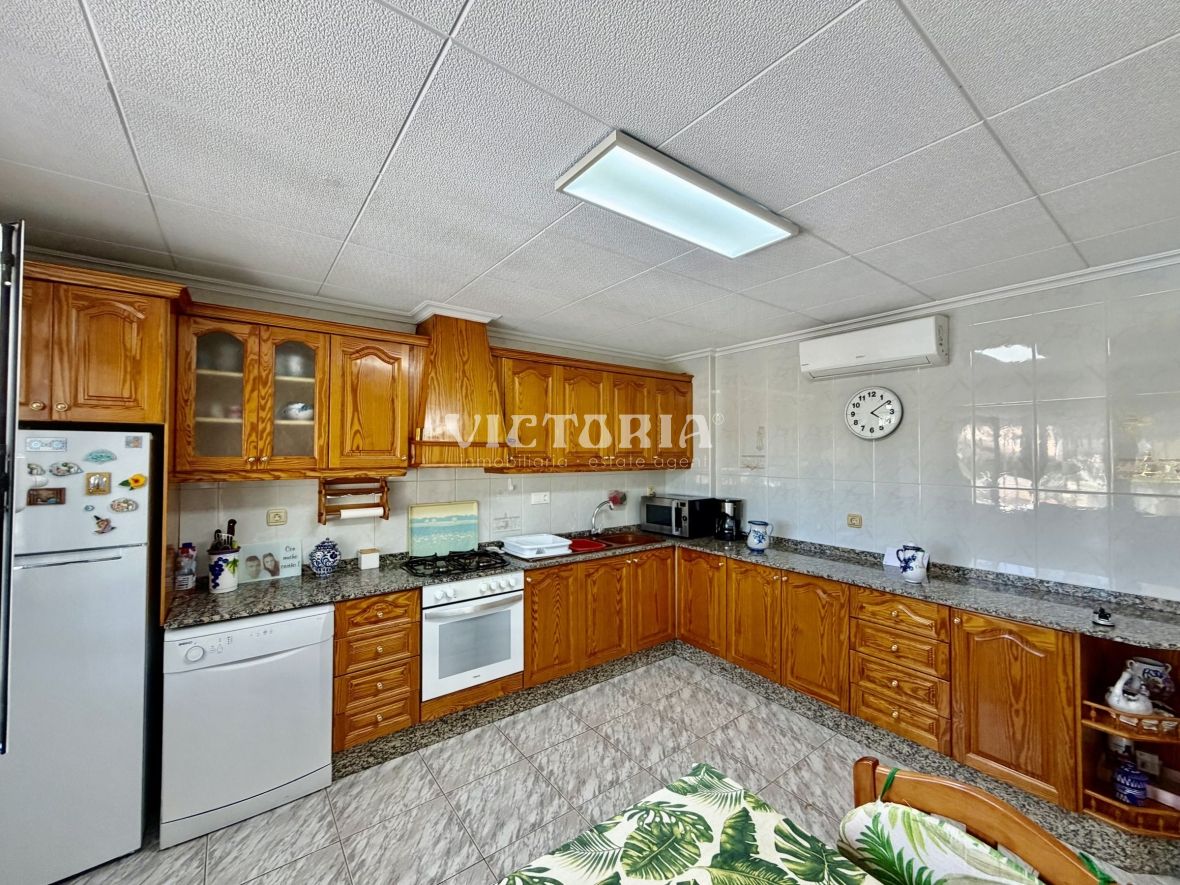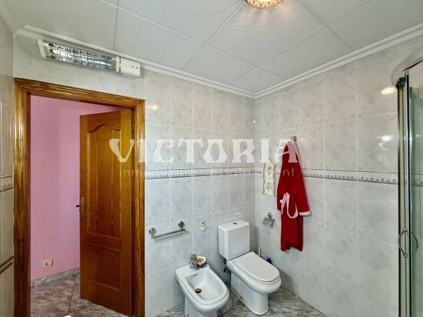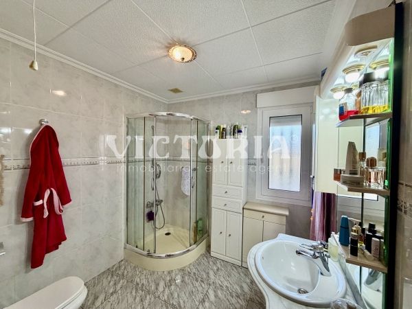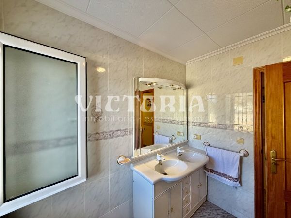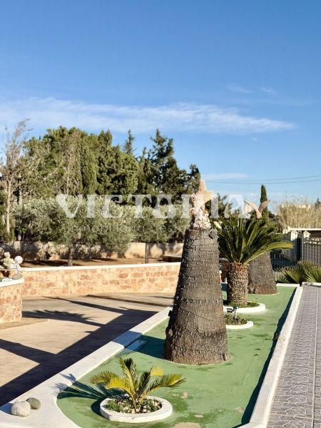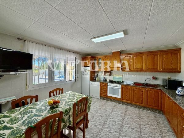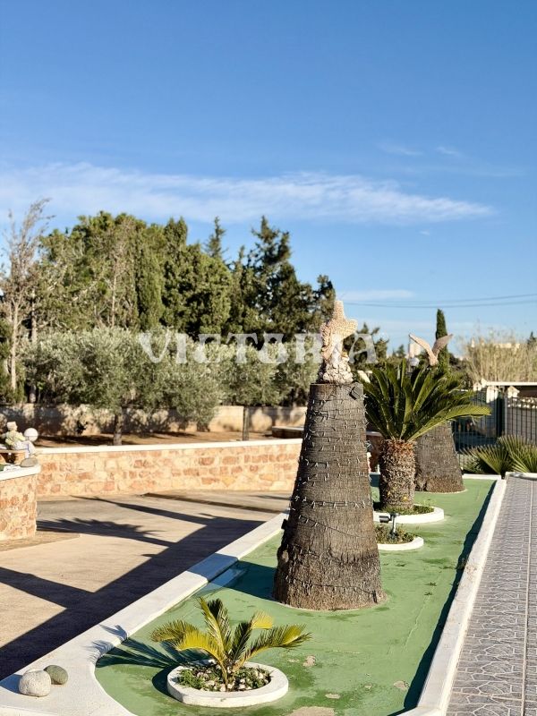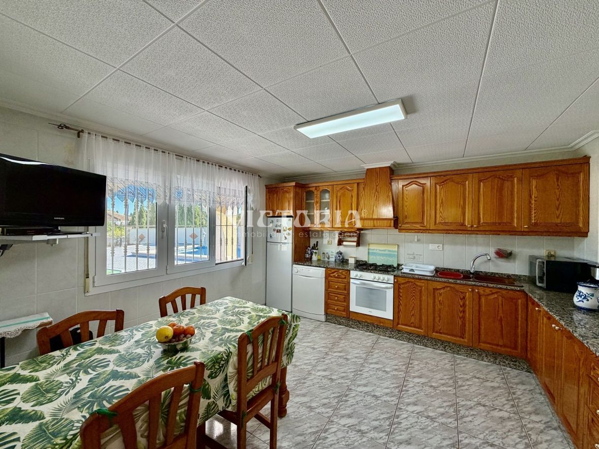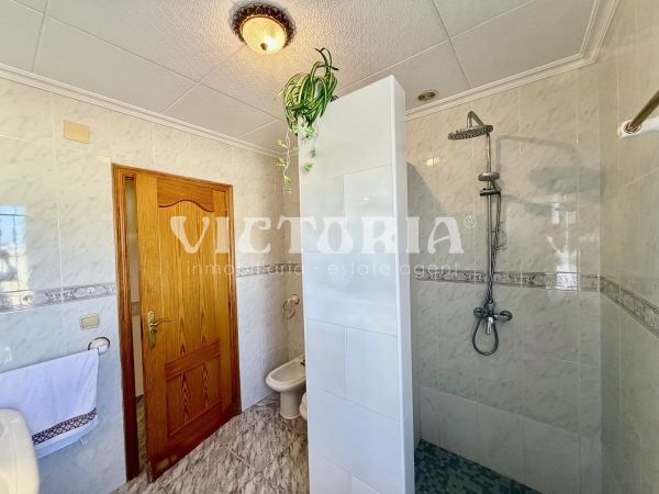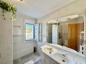 La vivienda principal dispone de 6 amplios dormitorios y 3 baños, uno de ellos en suite, además de un luminoso salón y cocina independiente. Está equipada con 3 aparatos de aire acondicionado, garantizando confort durante todo el año. Desde la vivienda se accede a una agradable zona de solárium, perfecta para disfrutar del clima mediterráneo.