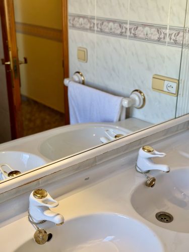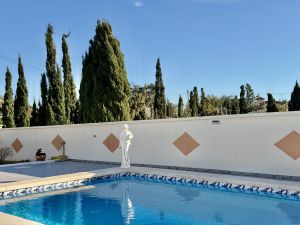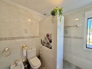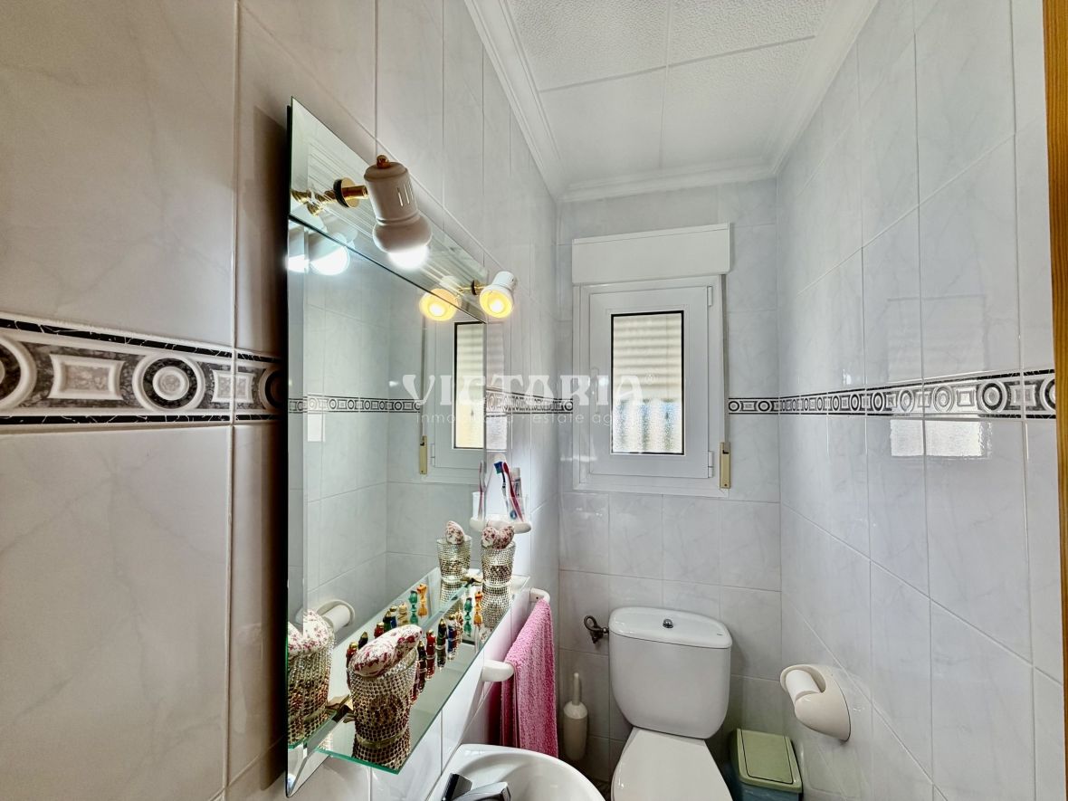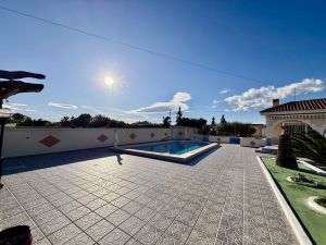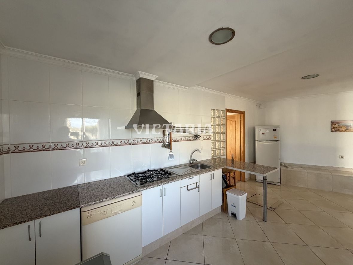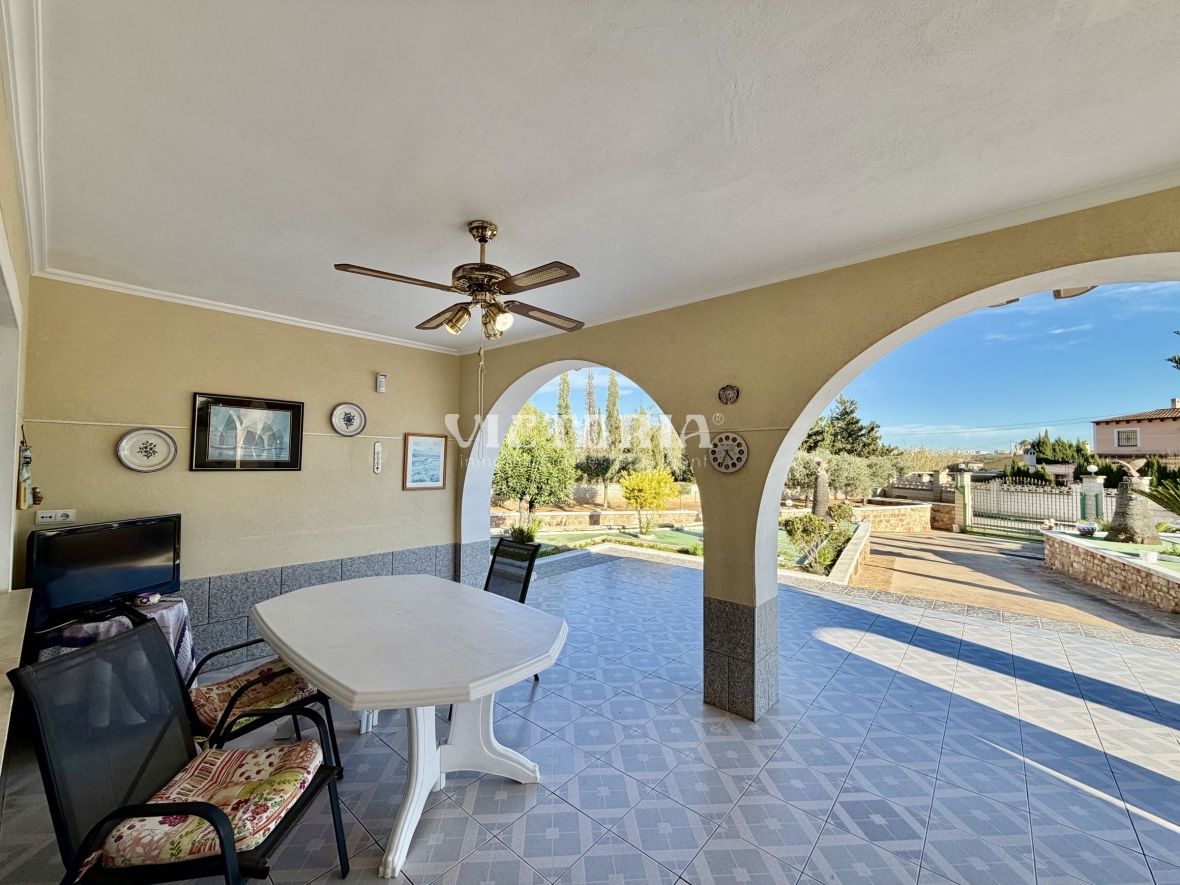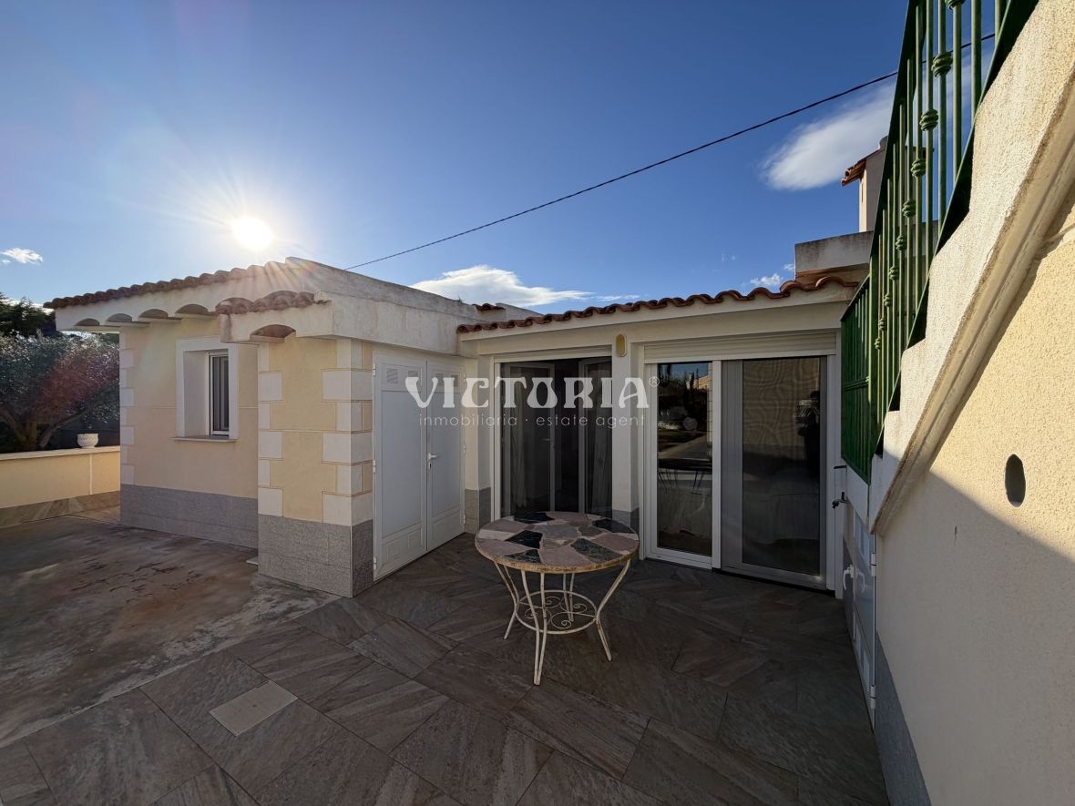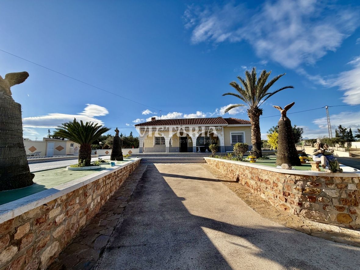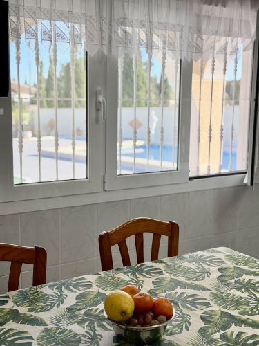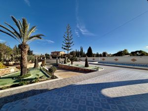 La vivienda principal dispone de 6 amplios dormitorios y 3 baños, uno de ellos en suite, además de un luminoso salón y cocina independiente. Está equipada con 3 aparatos de aire acondicionado, garantizando confort durante todo el año. Desde la vivienda se accede a una agradable zona de solárium, perfecta para disfrutar del clima mediterráneo.