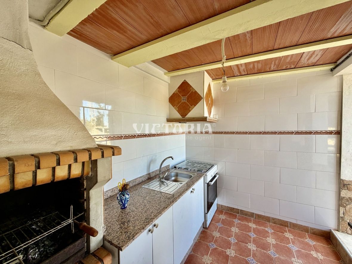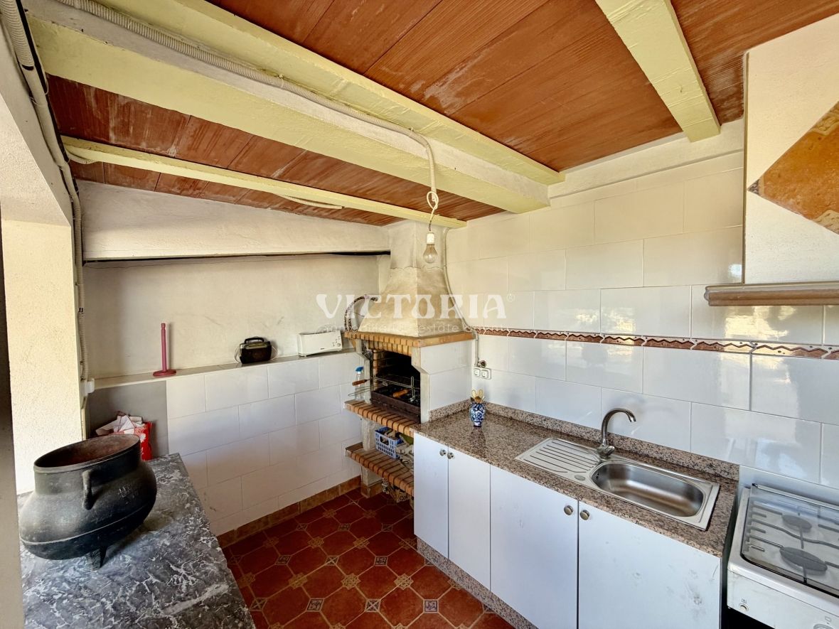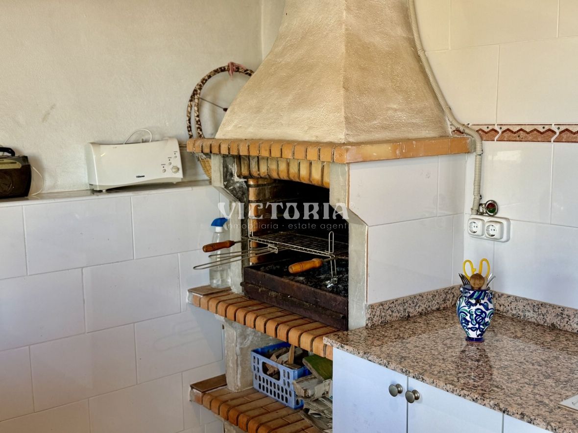 En el exterior, la propiedad ofrece una cuidada zona de comedor al aire libre con barbacoa y cocina exterior, ideal para reuniones familiares y con amigos, así como una estancia adicional destinada a almacenamiento o herramientas...