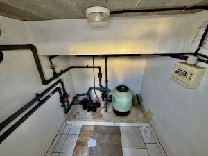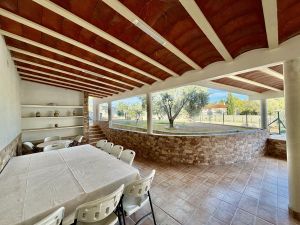 Junto a la piscina se encuentra una casita de piscina con zona de maquinaria, ducha y aseo, aportando aún más funcionalidad a la propiedad.