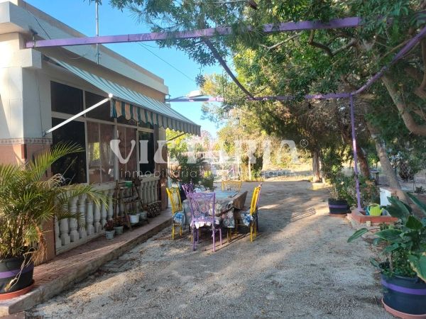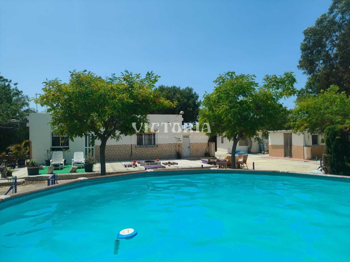 Vivienda con de 2.000 m² de parcela, con árboles frutales y  con piscina elevada, garaje, barbacoa y jardín con zona de cultivos con riego por goteo, además cuenta con depósitos para recogida de agua de lluvia.