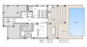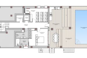 Via internal stairs or the elevator, you can access the semi-basement, which encompasses a cinema room, a wine cellar, a double bedroom with an en-suite bathroom, and a hall leading to a porch. Below this level, you'll find a barbecue area, a summer kitchen, and a pool area with a 29.52 m² terrace.
