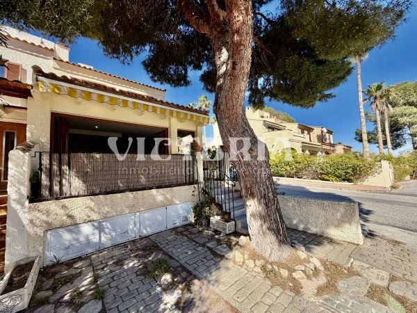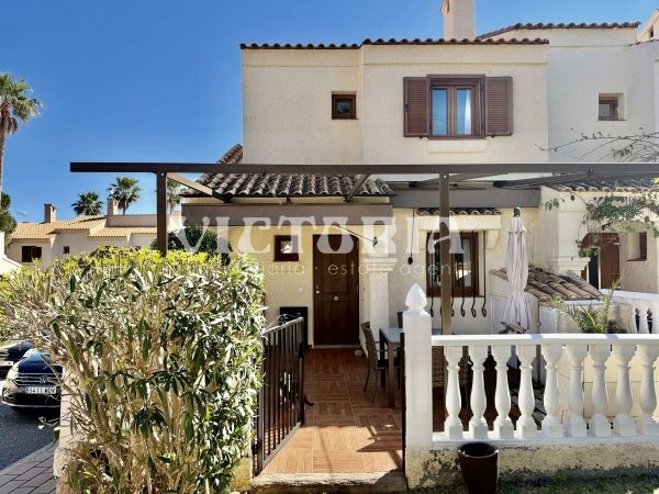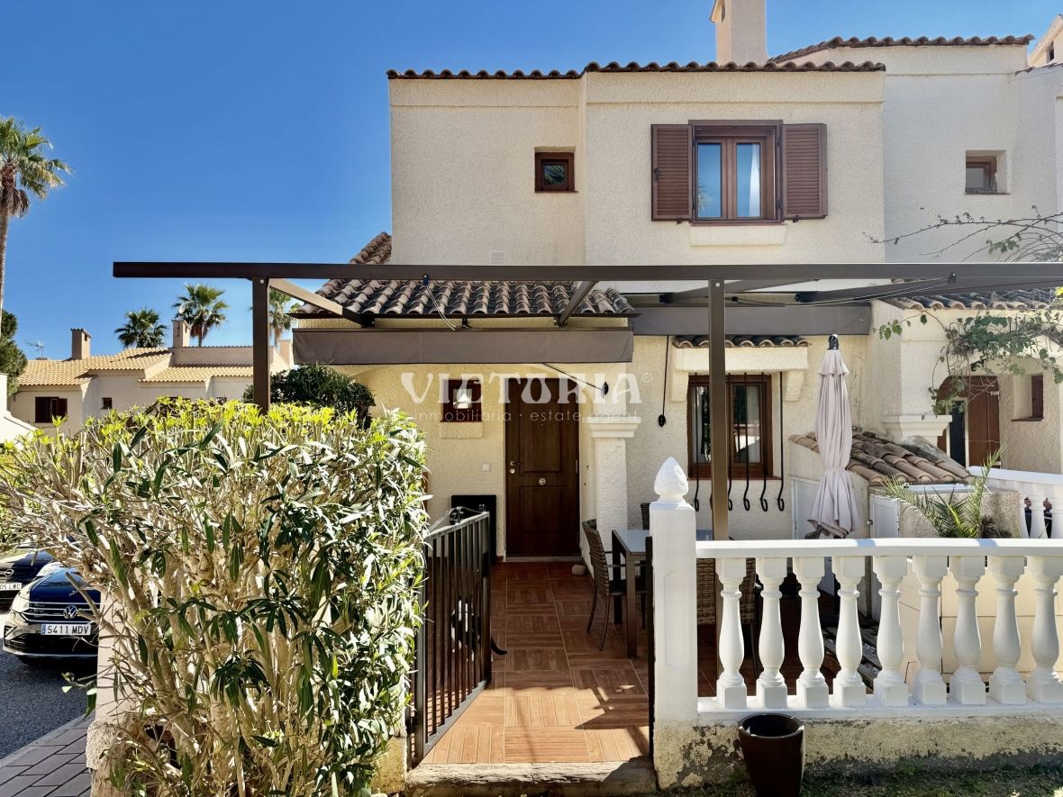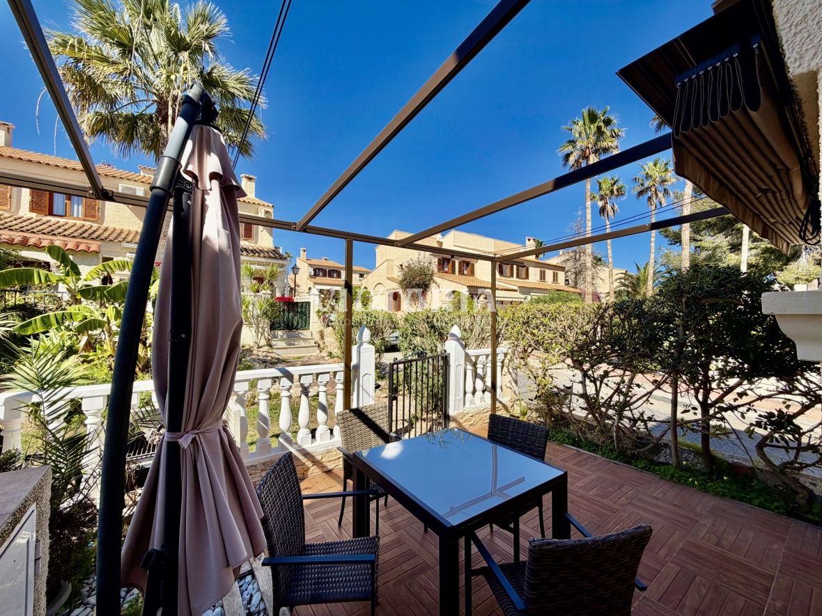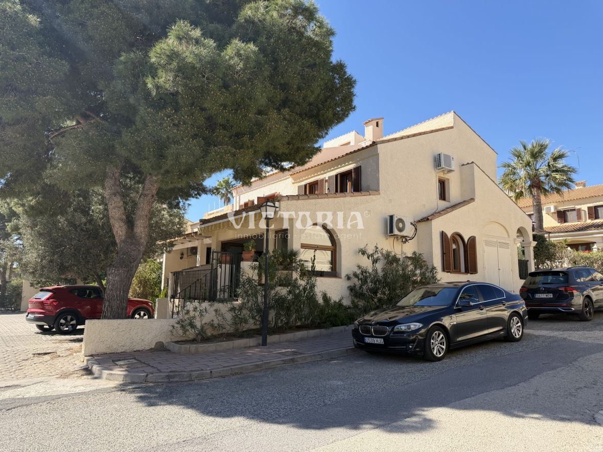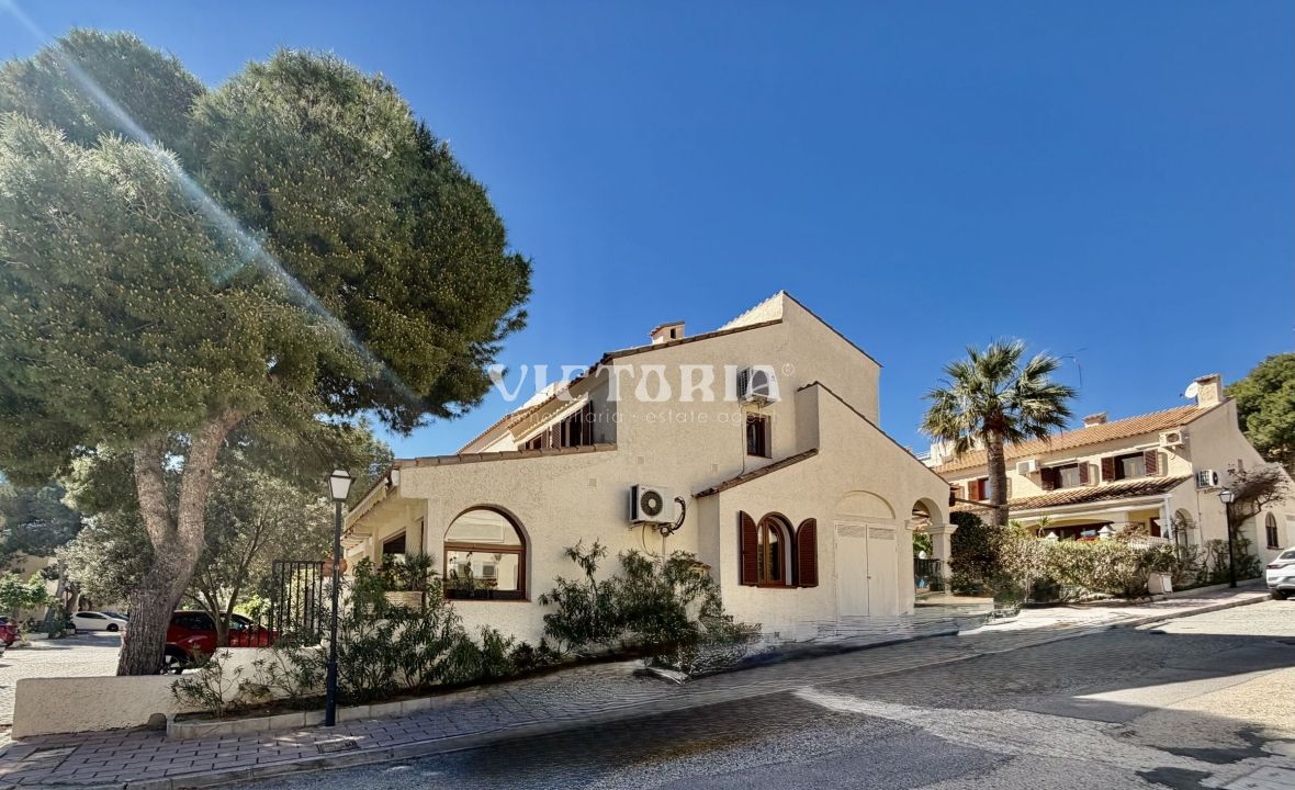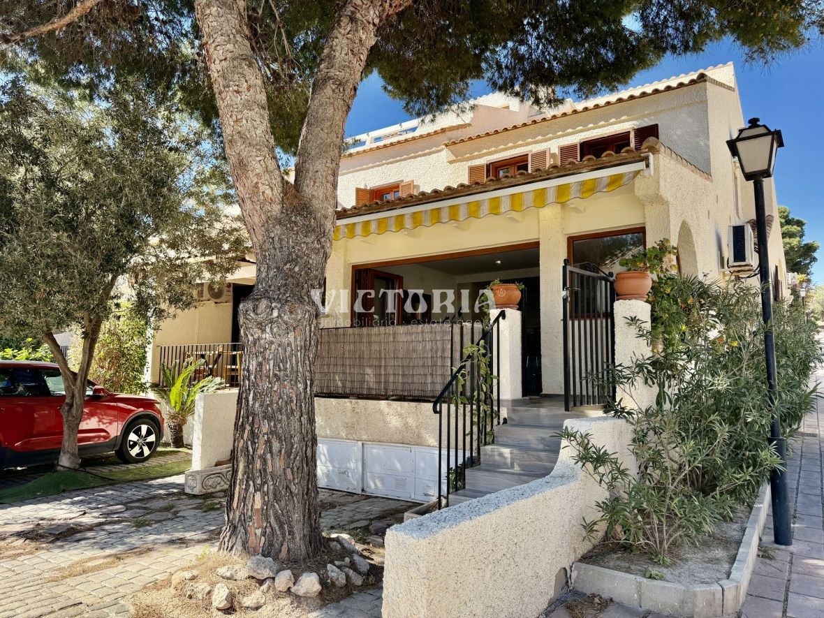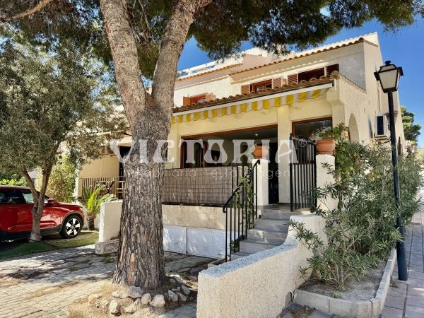 Discover this spectacular corner bungalow in the prestigious El Faro residential development in Gran Alacant, one of the most sought-after and exclusive areas on the Alicante coast.