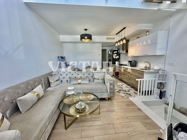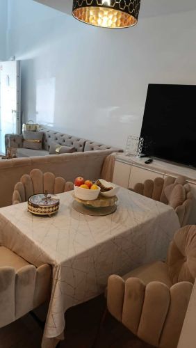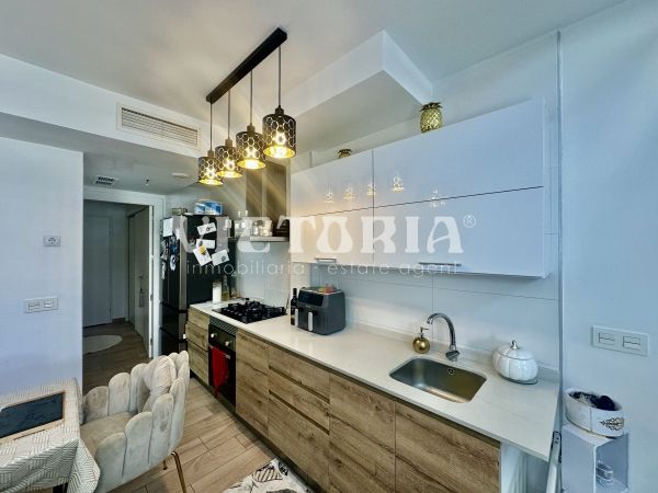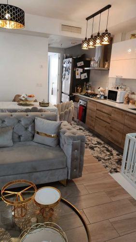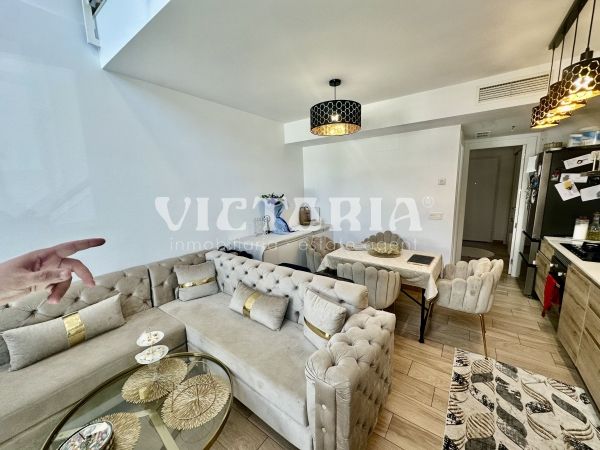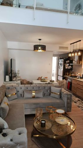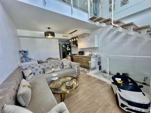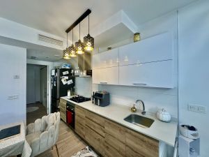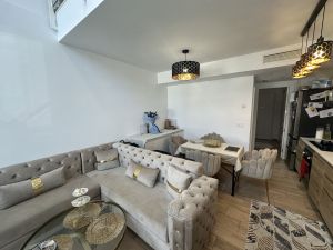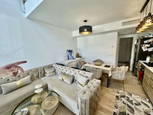 Living-Dining Room: A spacious and bright area with large windows that flood the space with natural light and offer panoramic views. The open design connects seamlessly with the modern kitchen, fully equipped with high-end appliances and luxury finishes.