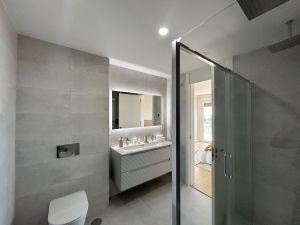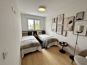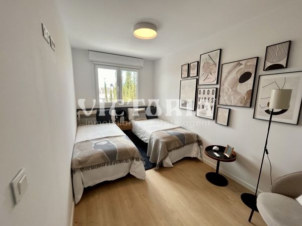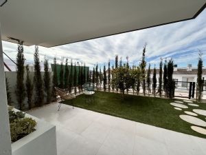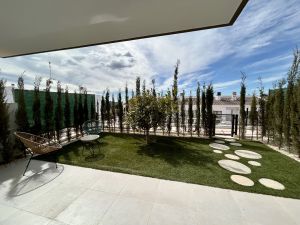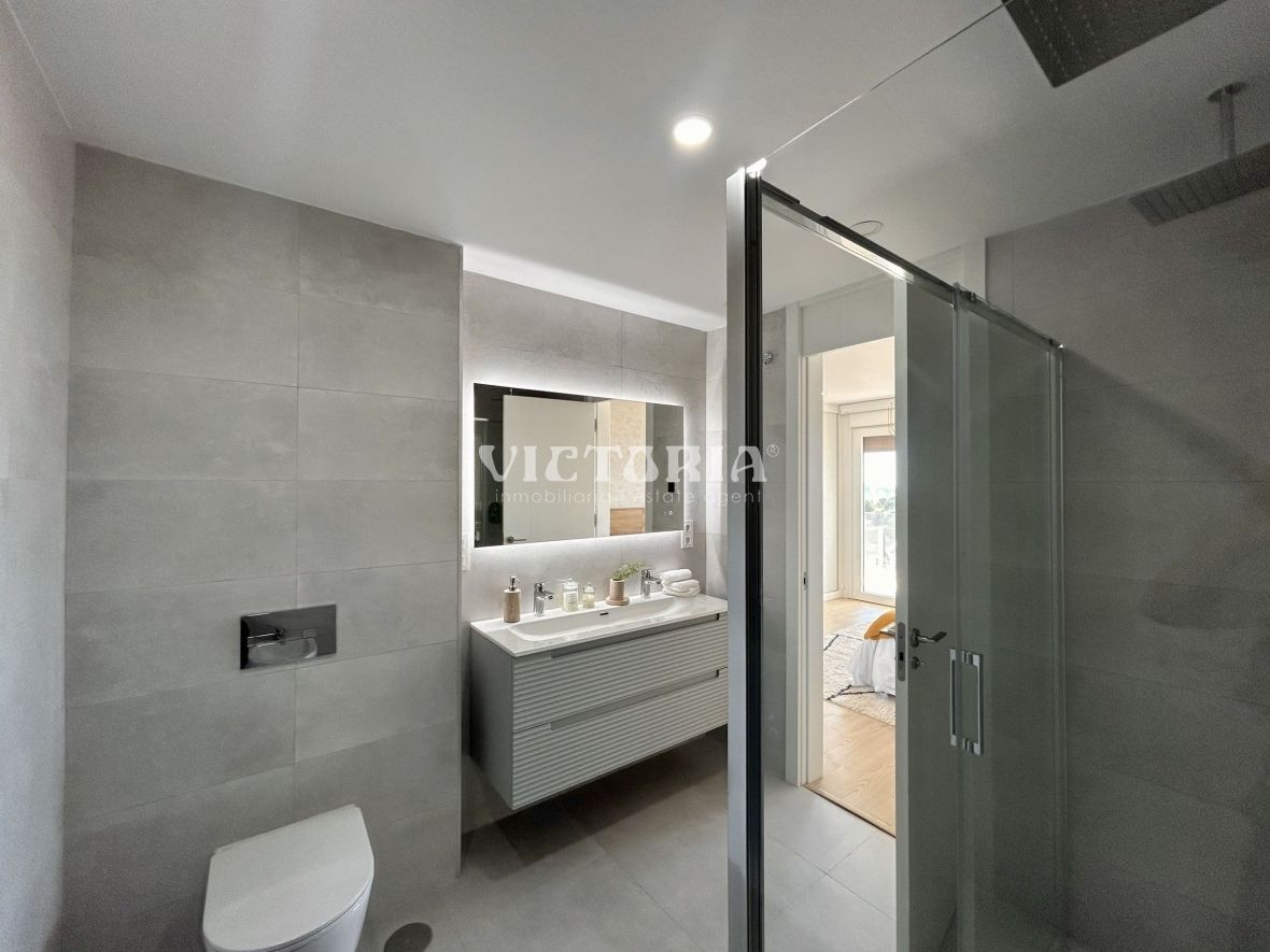 The development features over 4,000 m² of communal areas: an infinity pool with heated jacuzzi, a paddle tennis court, landscaped gardens, and a children’s playground. Each villa includes aerothermal heating, solar panels, enhanced insulation, high-efficiency windows, video intercom, and USB-C outlets in every room.
