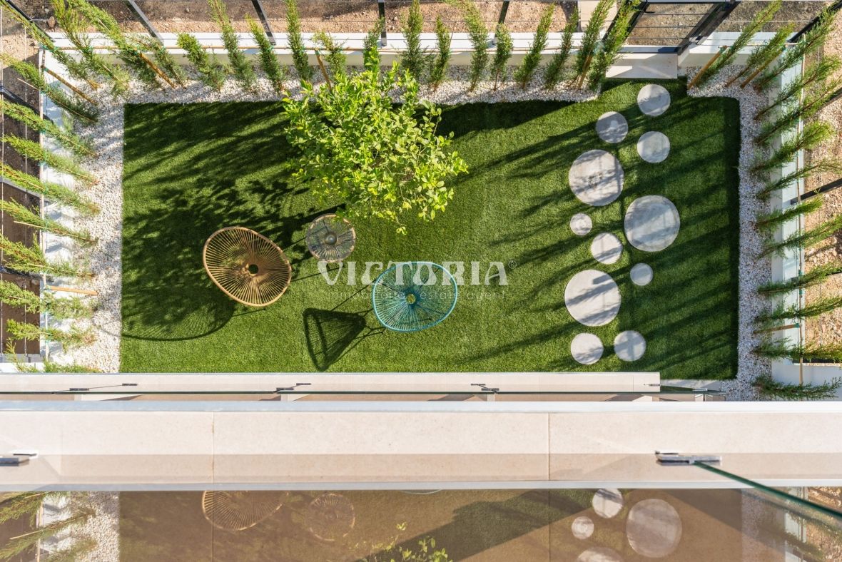 Discover 28 unique, light-filled villas with contemporary design and high-quality finishes, fully customisable to suit your style. Terraces, private gardens, solariums, and the option of a private pool make each home a perfect space to enjoy the Mediterranean climate all year round.